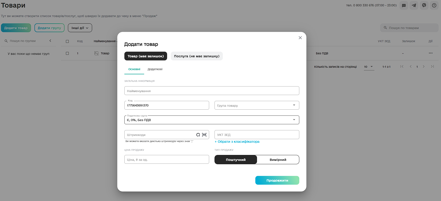 Опція "Застосовувати до всіх товарів" автоматично підставить ставку в чеки.